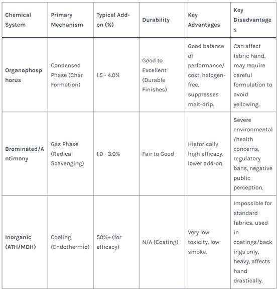 - Table 1: Comparative Analysis of Primary FR Chemical Systems for Polyester